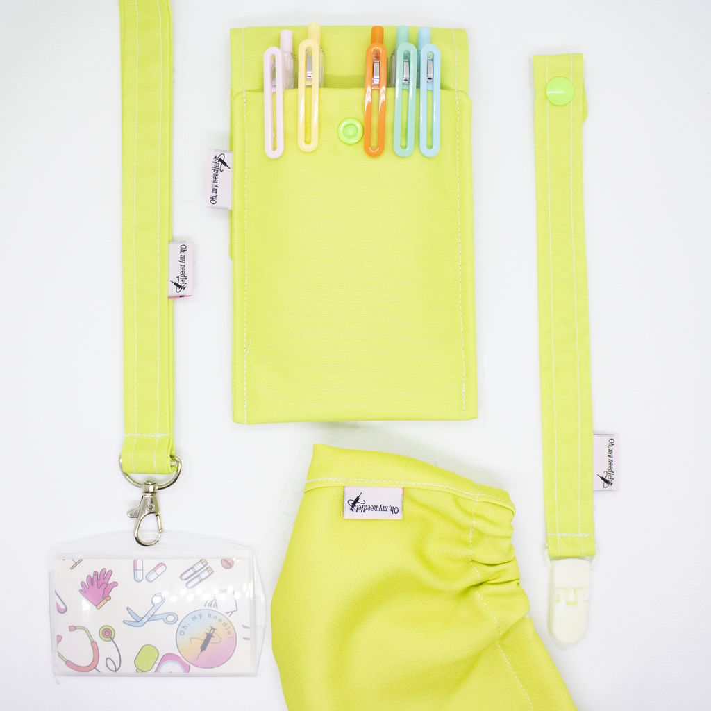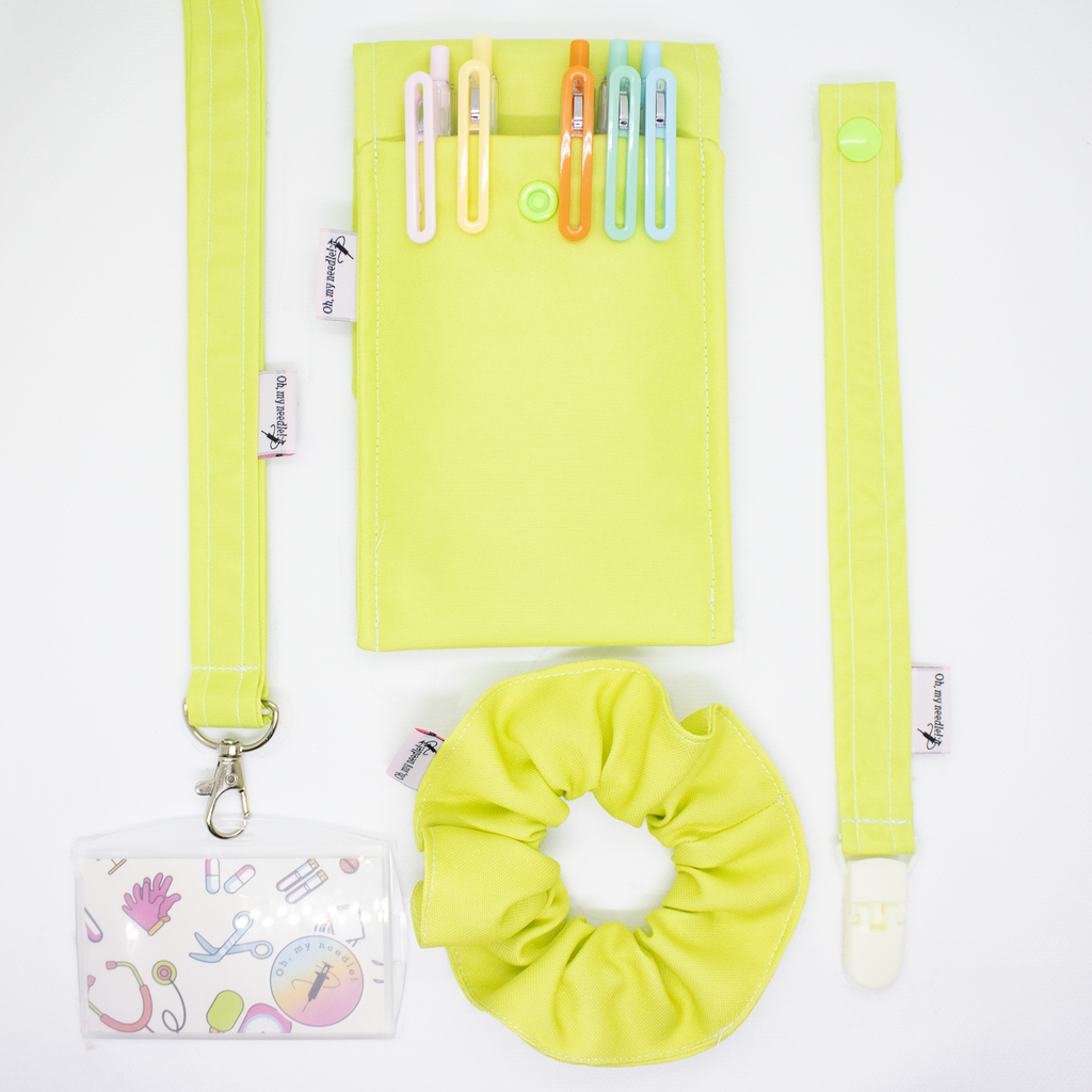 Os acessórios essenciais Oh, my needle! reunidos num conjunto, composto por: