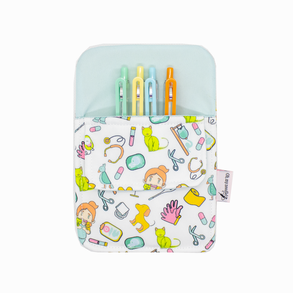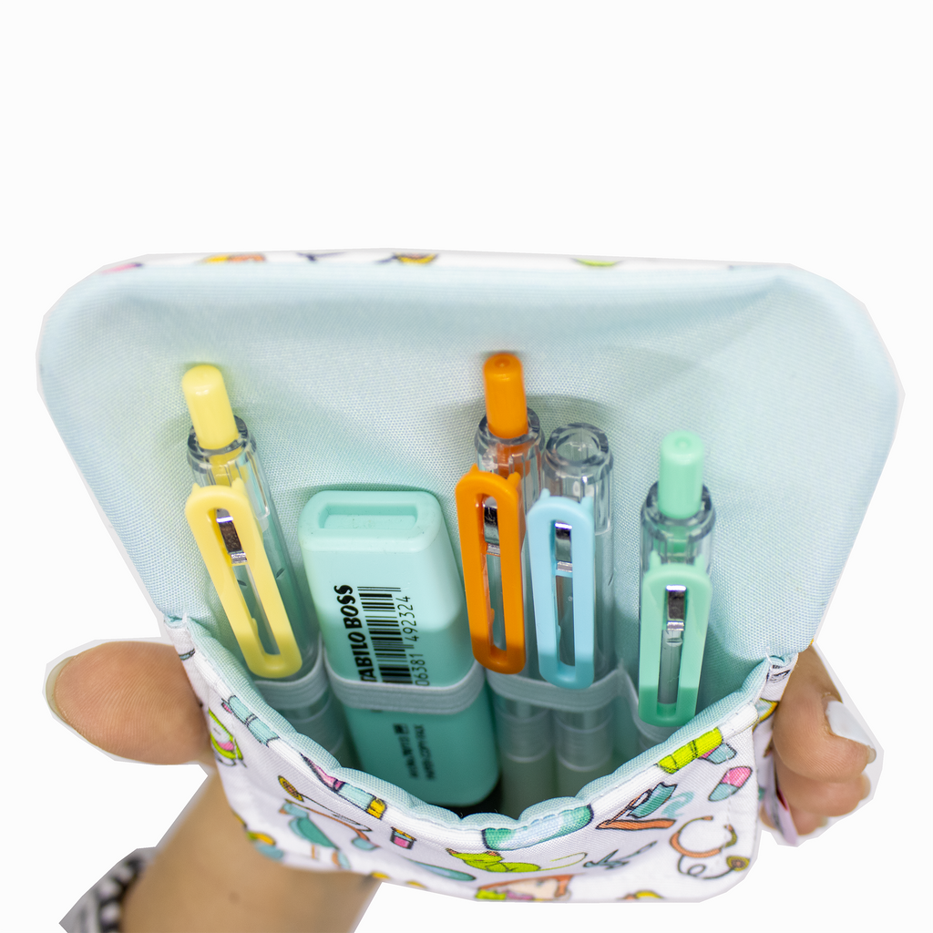 O salva bolsos Oh, my needle! é um estojo de bolso, que permite teres o teu material sempre à mão, sem sujar a tua farda com tinta de caneta.