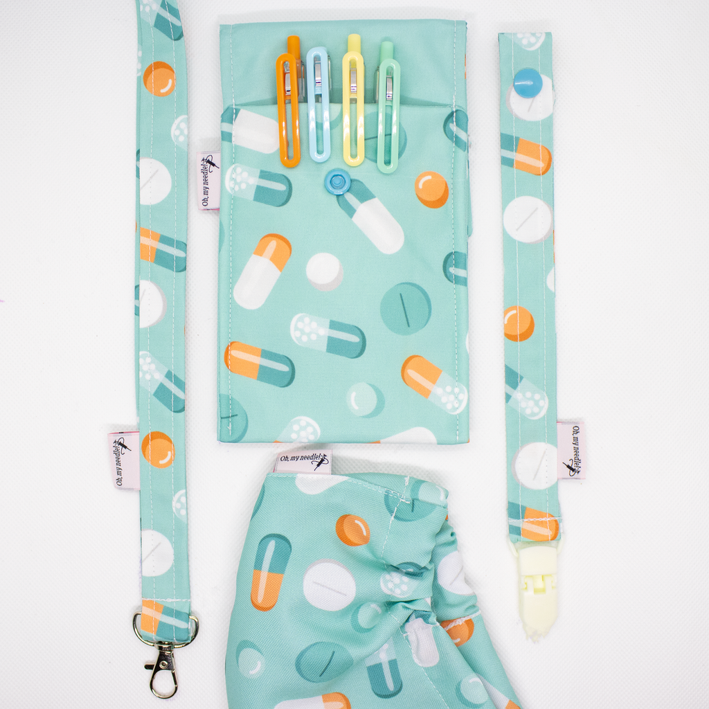 Os acessórios essenciais Oh, my needle! reunidos num conjunto, composto por: