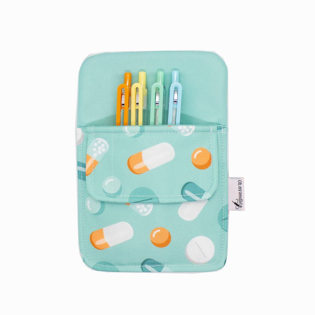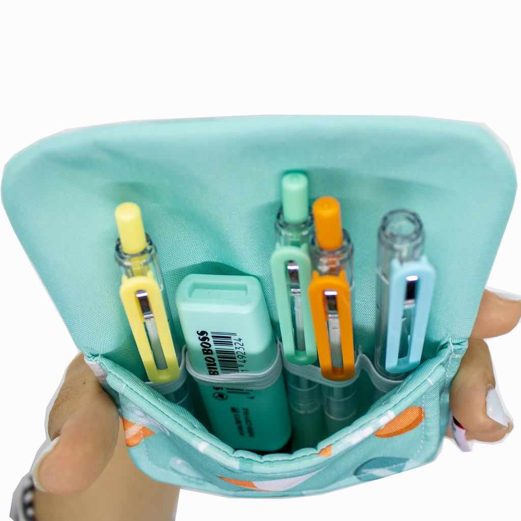O salva bolsos Oh, my needle! é um estojo de bolso, que permite teres o teu material sempre à mão, sem sujar a tua farda com tinta de caneta.