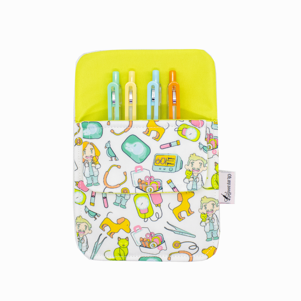 O salva bolsos Oh, my needle! é um estojo de bolso, que permite teres o teu material sempre à mão, sem sujar a tua farda com tinta de caneta.