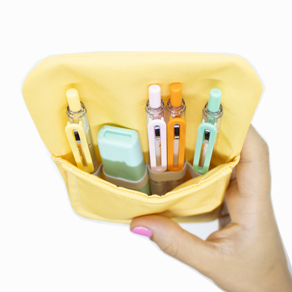 O salva bolsos Oh, my needle! é um estojo de bolso, que permite teres o teu material sempre à mão, sem sujar a tua farda com tinta de caneta.