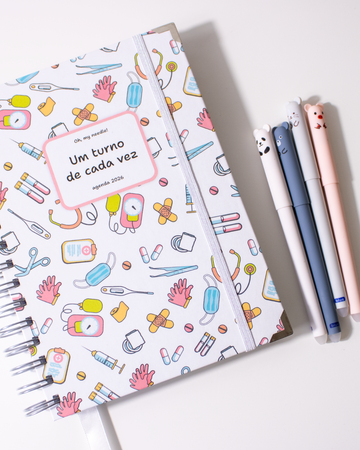 Esta agenda foi criada e pensada para ti, Enfermeira. Incluí conteúdos úteis e específicos da profissão de Enfermagem, com páginas para apontares os teus turnos, trocas, diluições de medicamentos, notas clínicas e compromissos importantes.