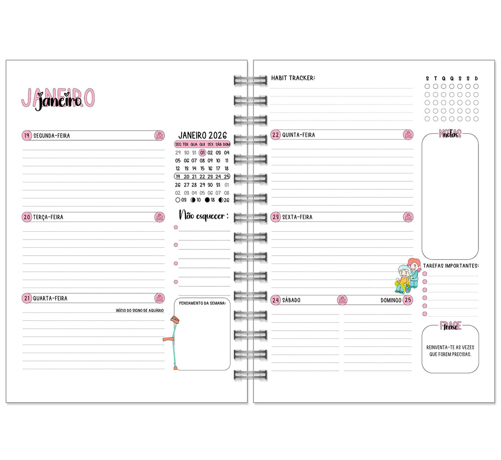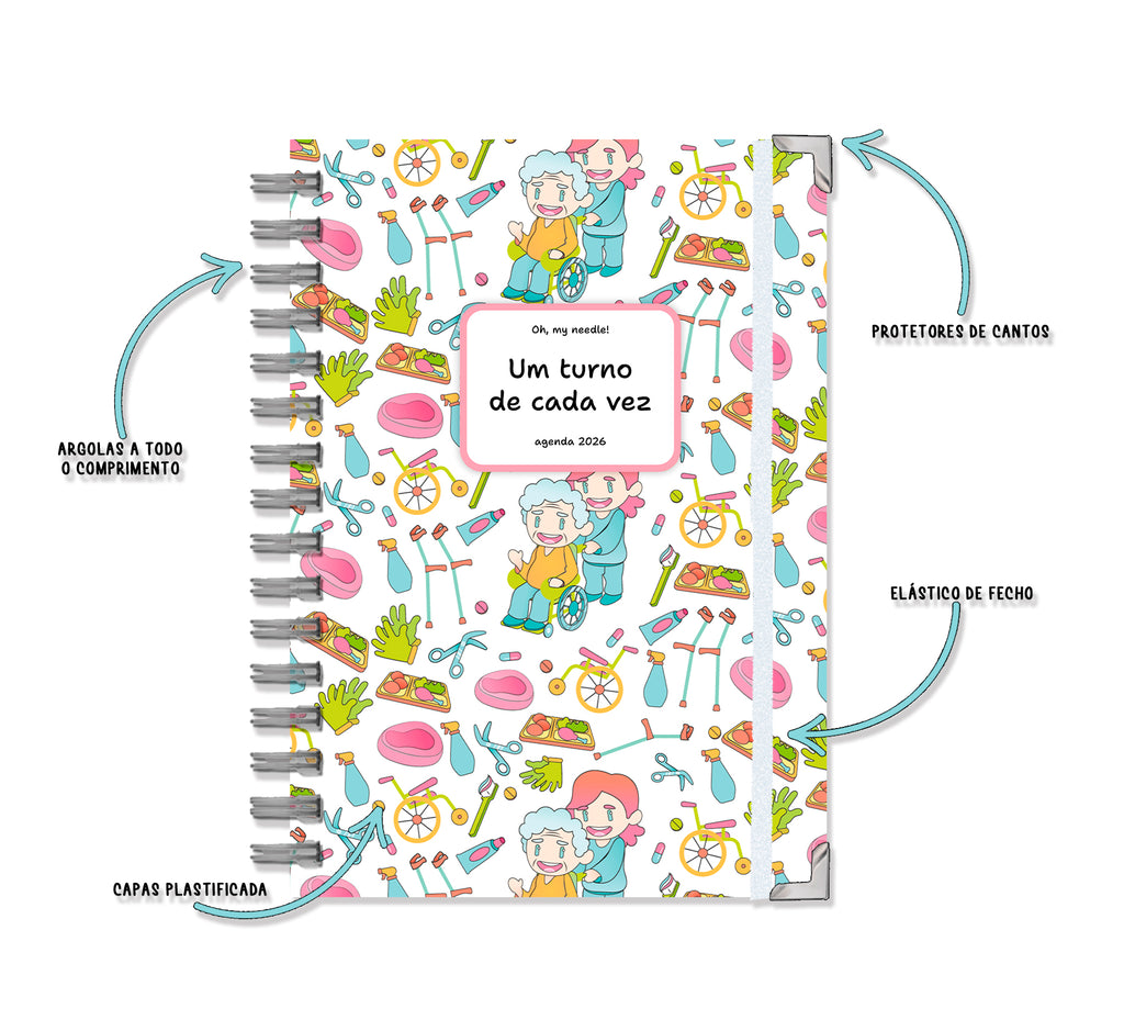 Esta agenda foi criada e pensada para ti, Técnica Auxiliar de Saúde. Incluí conteúdos úteis e específicos da profissão de Enfermagem, com páginas para apontares os teus turnos, trocas, diluições de medicamentos, notas clínicas e compromissos importantes.