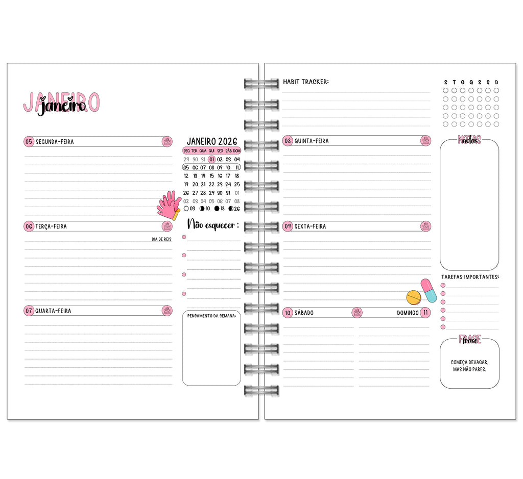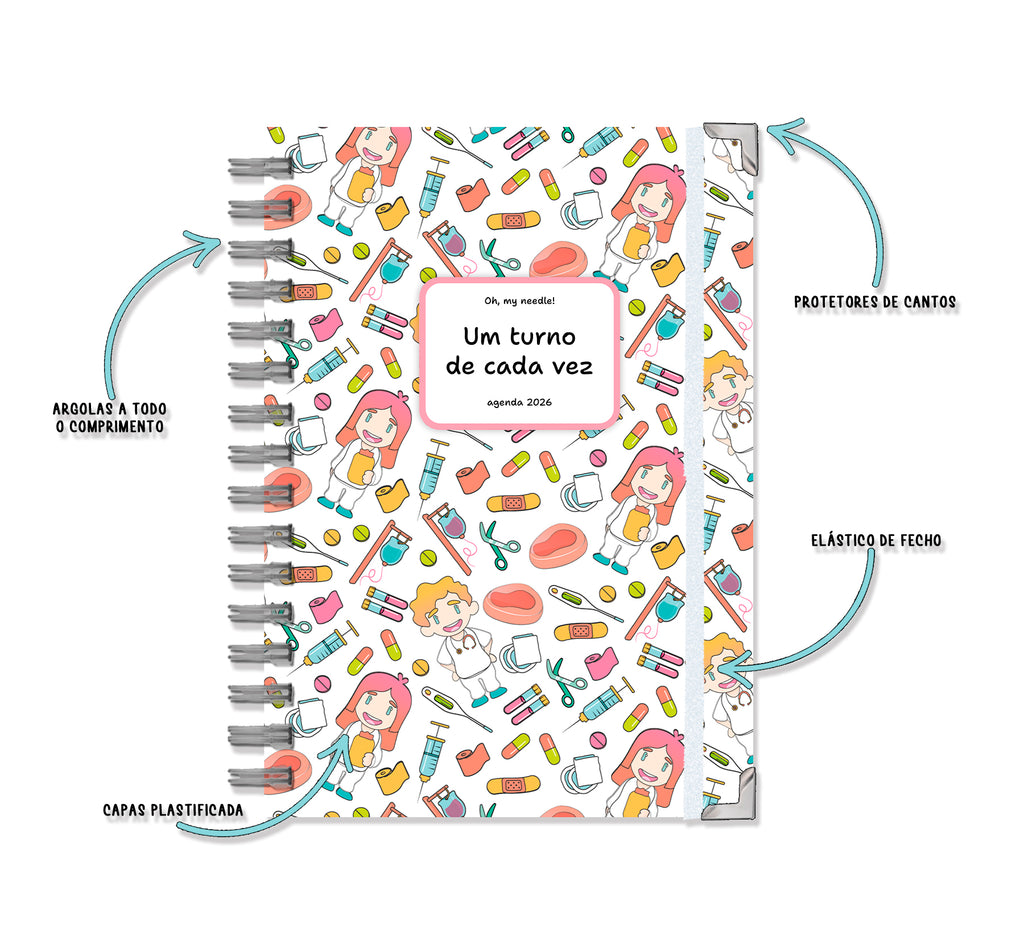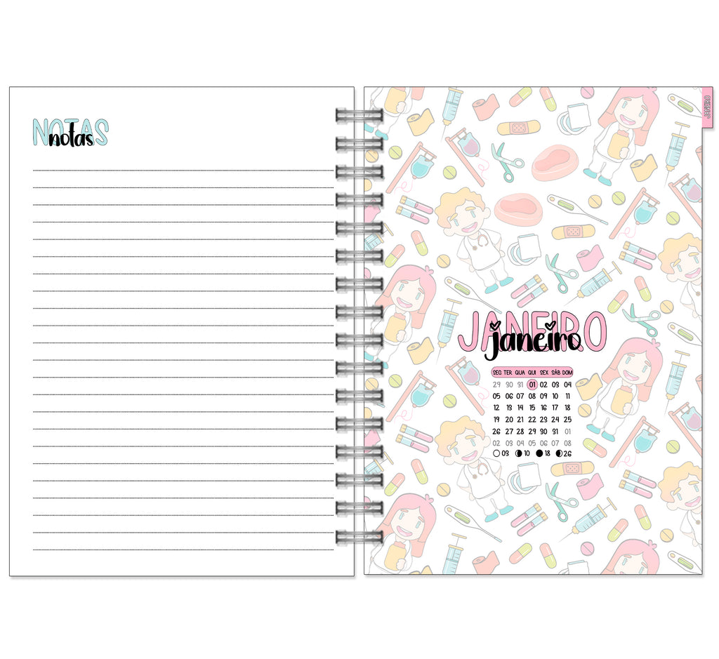 Com detalhes especiais e alusivos à área de Enfermagem, espalhados por toda a agenda.