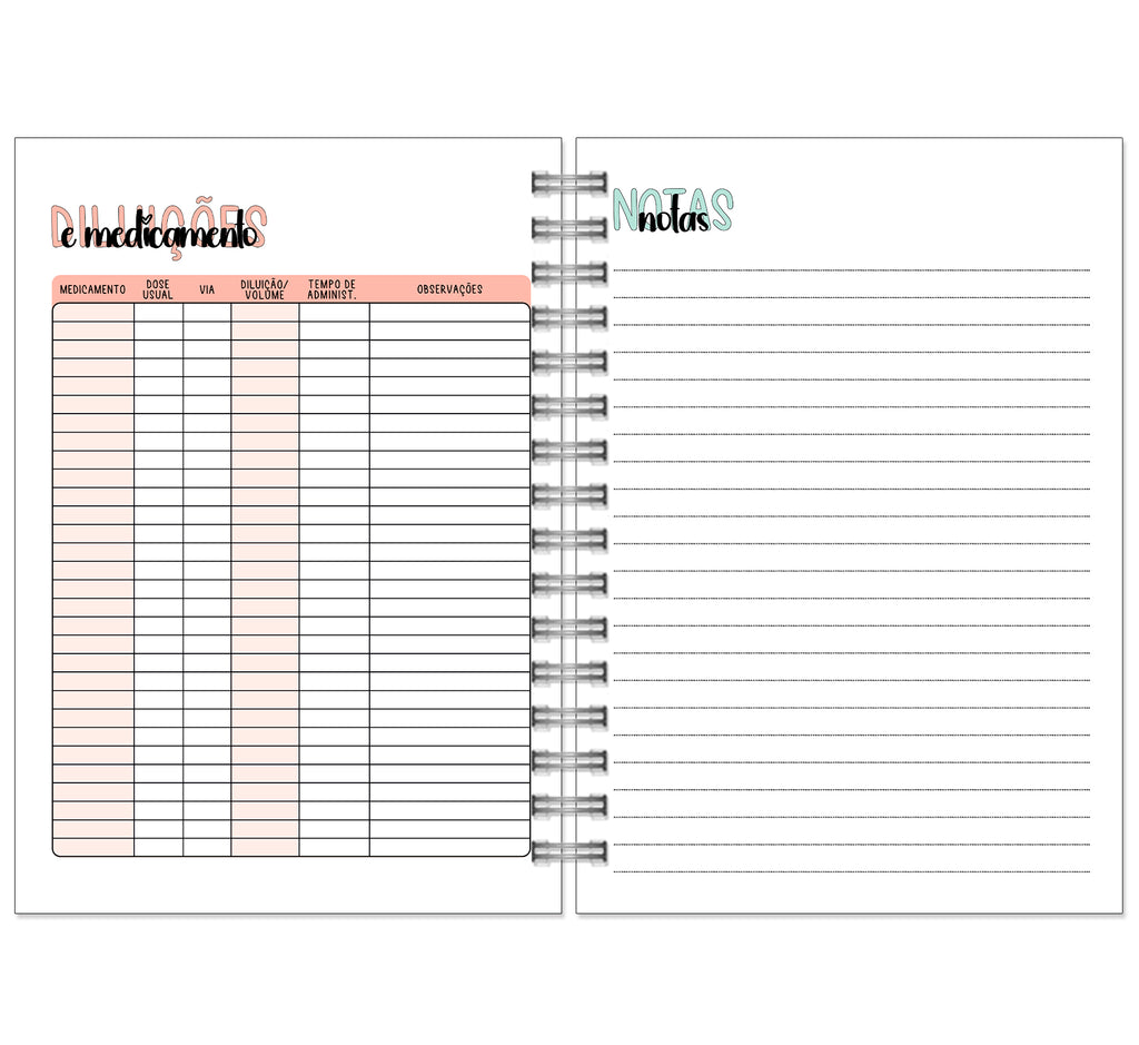 Esta agenda foi criada e pensada para ti, Enfermeira. Incluí conteúdos úteis e específicos da profissão de Enfermagem, com páginas para apontares os teus turnos, trocas, diluições de medicamentos, notas clínicas e compromissos importantes.