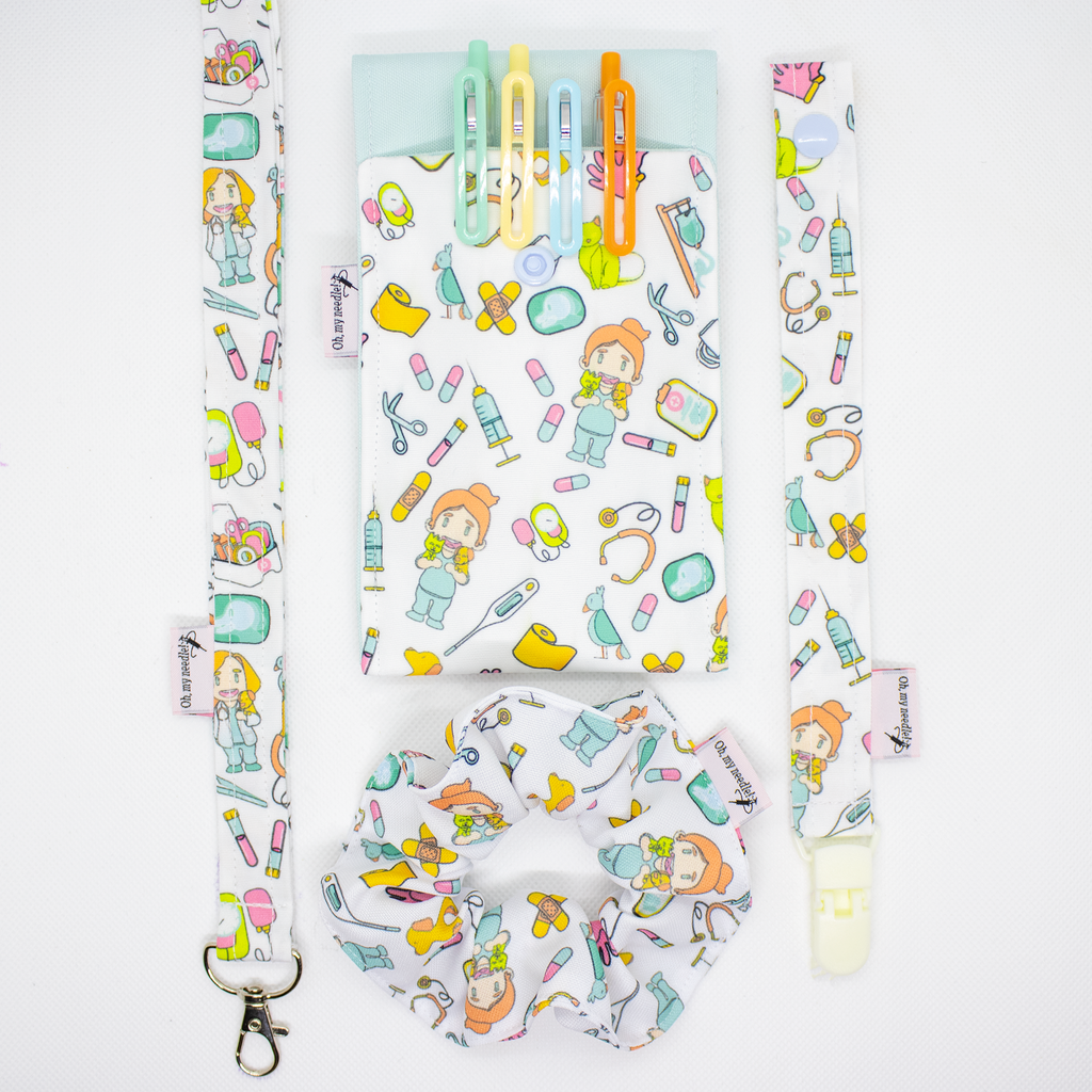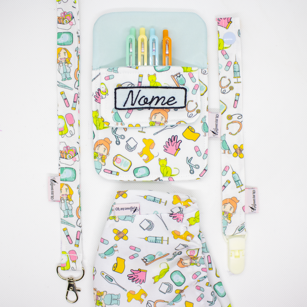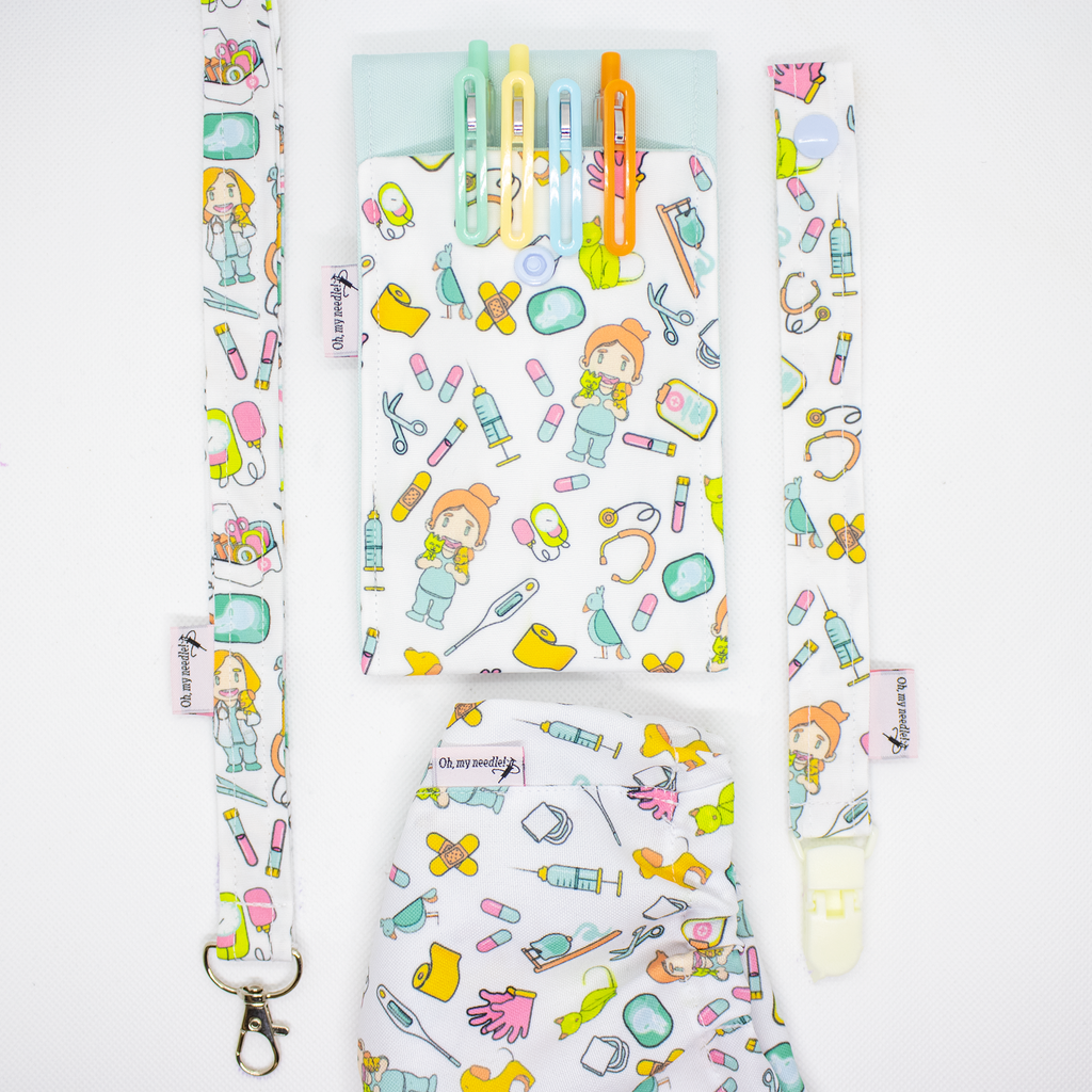Os acessórios essenciais Oh, my needle! reunidos num conjunto, composto por: