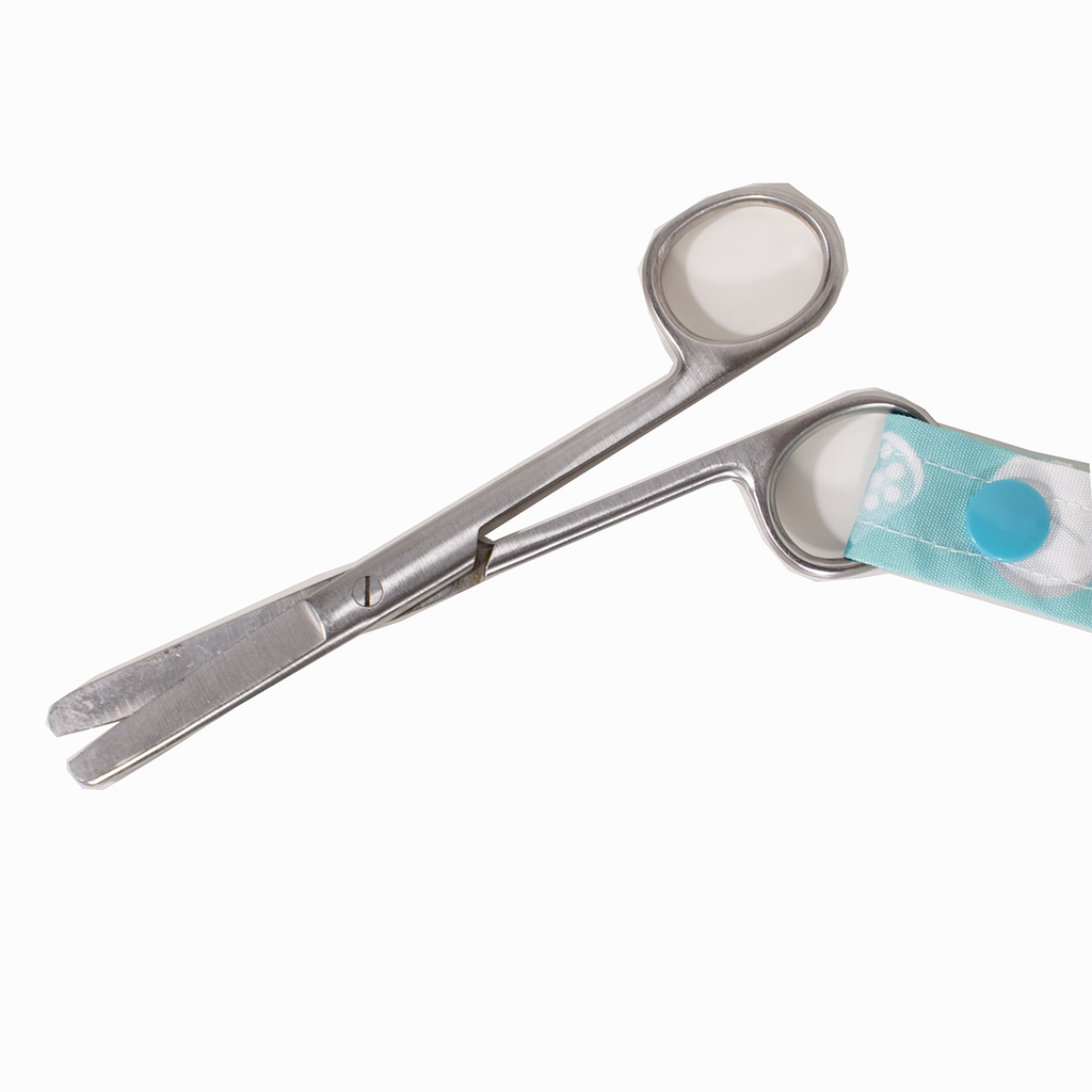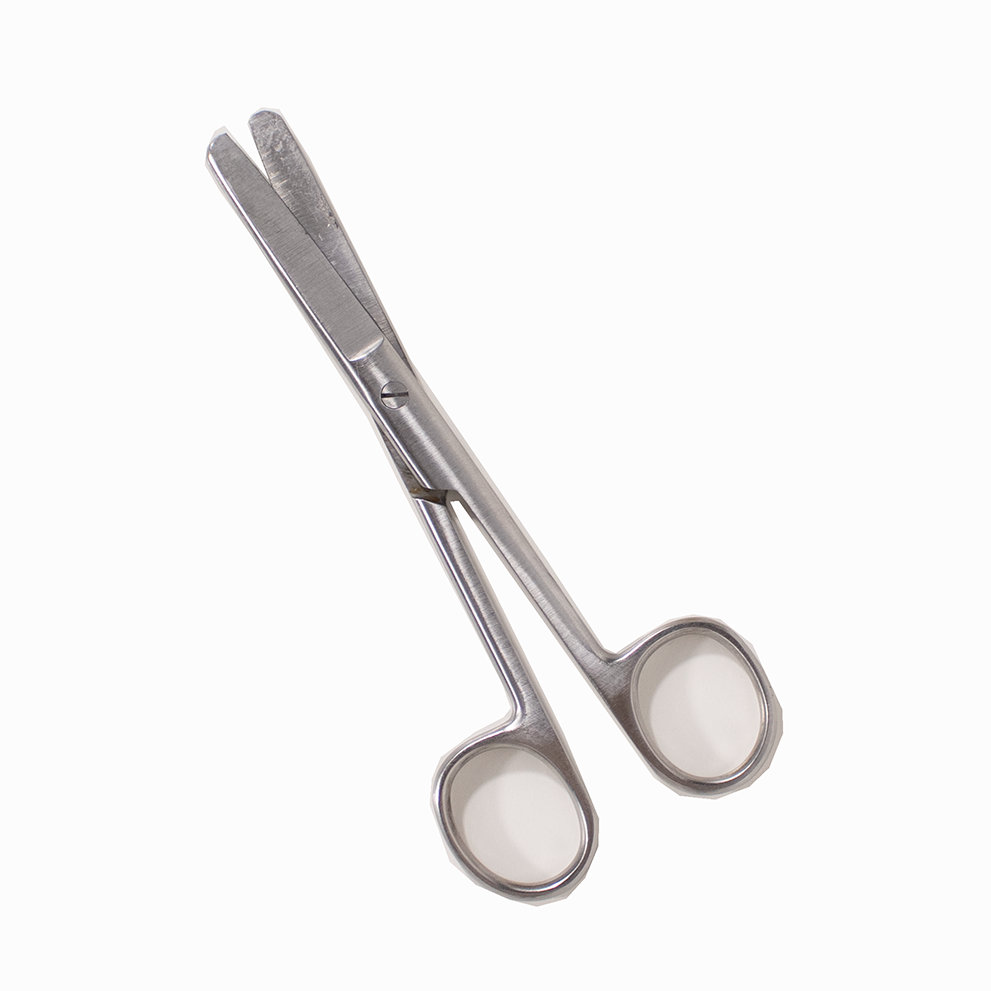 Tesoura de Enfermagem reta com ponta redonda em aço inoxidável.